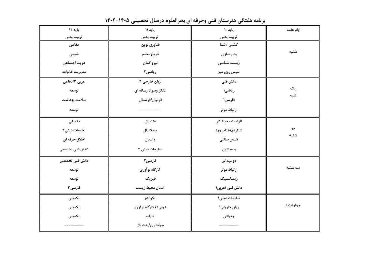 آماده برای دانشآموزان هنرستان بحرالعلوم