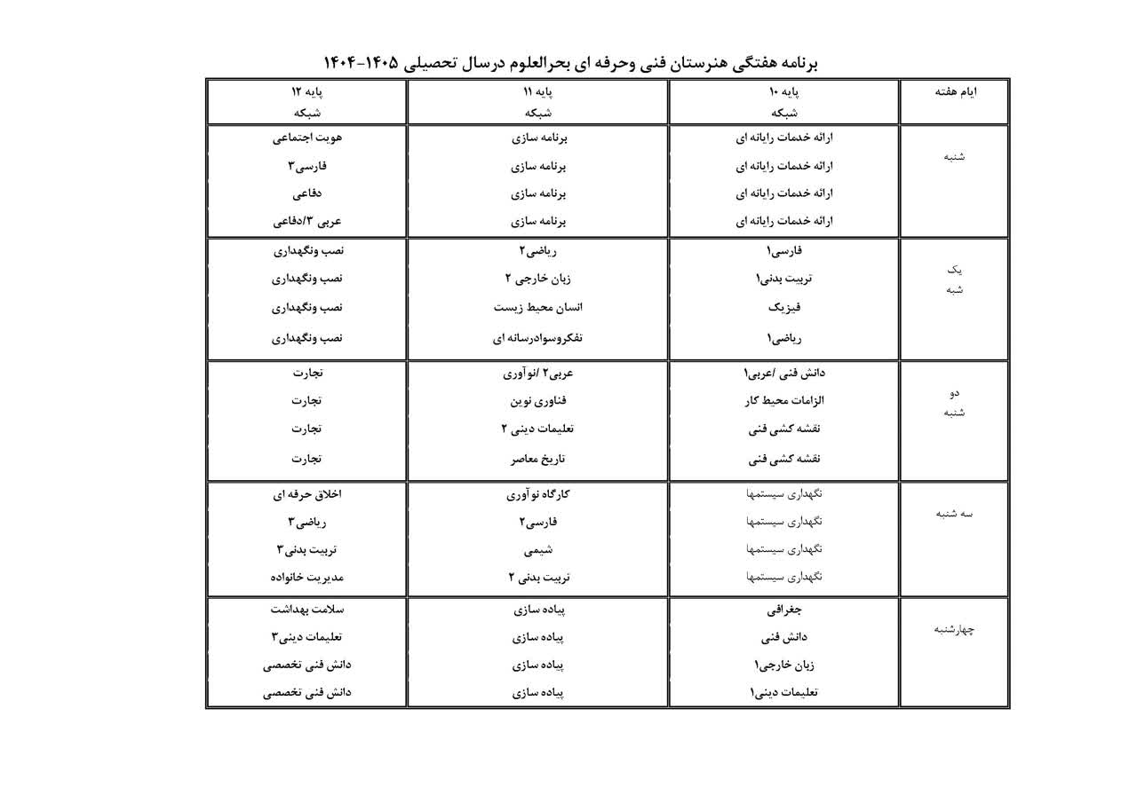 آماده برای دانشآموزان هنرستان بحرالعلوم